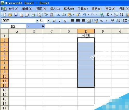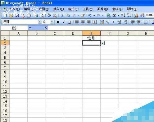 此时,性别列第一个空白单元格右侧便生成了一个下拉菜单。选中该单元格,将鼠标往下拉动,将格式填充至该列的其它空白单元格,这样其它单元格也生成了下拉菜单了。