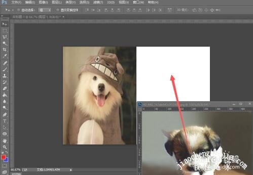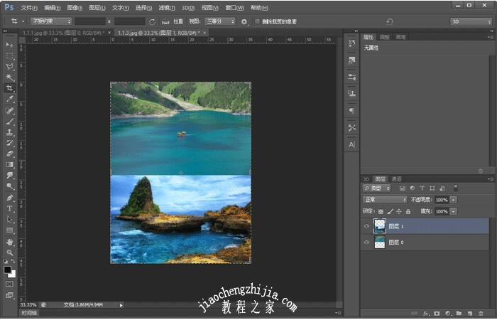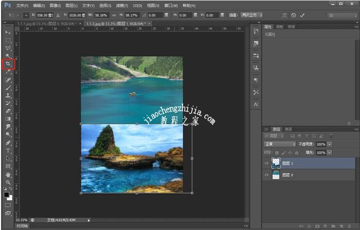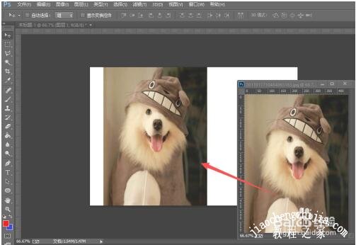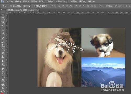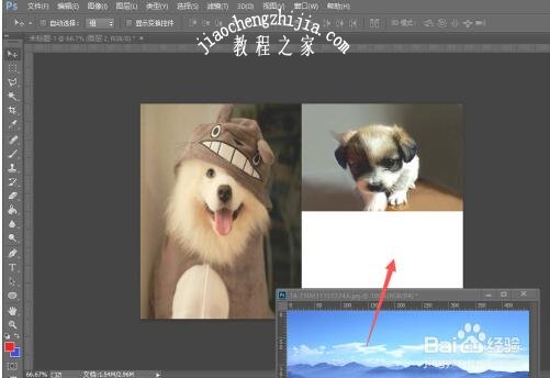 7、将图片调整到合适位置,就可以将两张图片合成一张图片,但是却还是可以看到是图片合成的;