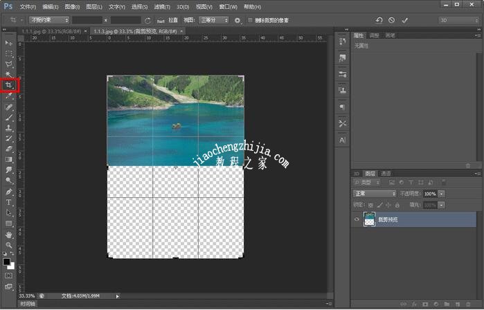 2、在第一张图片使用裁剪工具(C),拉大图片的尺寸,回车确定(或者点击上方的确定);