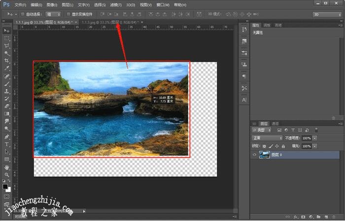 6、我们使用快捷键Ctrl+T变换图形,按住Shift将图片缩小到合适位置,如果画布尺寸过大,使用裁剪工具(C)缩小画布;