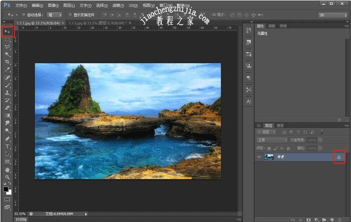 3、然后打开第二章图片,使用移动工具(V),在移动图片之前,查看图片图层是否被锁定,双击图层解锁;