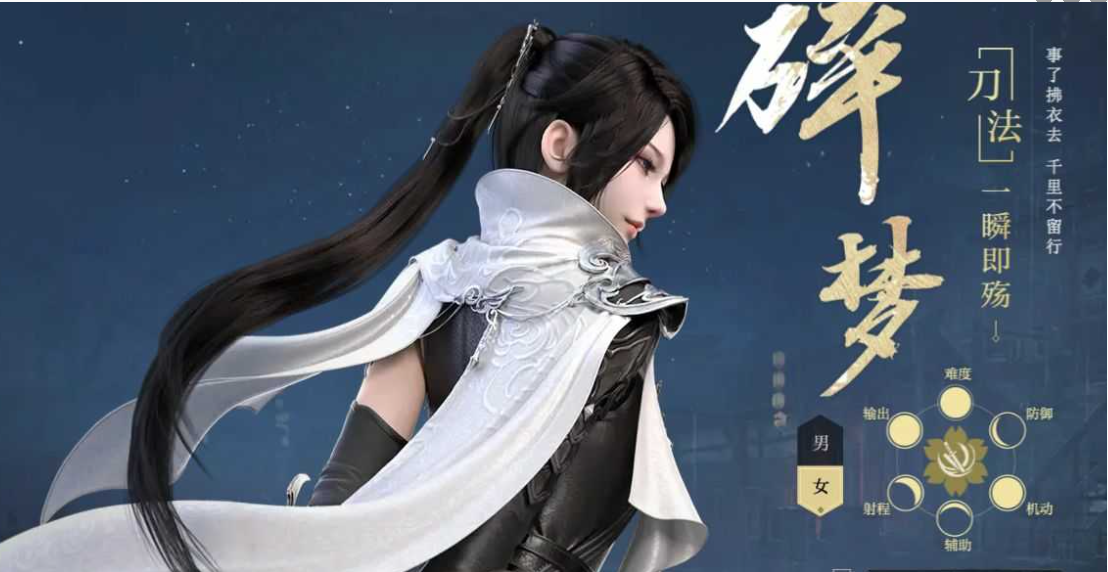 1.碎梦是一个以长刀为武器的外功近战,有一个核心的连击机制,叫做“一梦千一”,触发技能的时候会在右下角跳“白、刃、梦、极”4个白字,当到极的时候还会产生额外伤害。根据连击表现还会积累极意值,到100点的时候就会进入极意状态,部分技能强化的同时身手会更加的灵活。