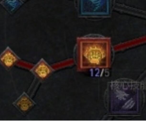 这里选择挫志咆哮是因为4秒70%减伤能极大的增加硬度以及点出强化可以迅速叠强固,至于群体减速,在未来配合恐怖熊人以及巅峰盘传奇节点大地灭绝还会使我们的伤害更上一层楼。