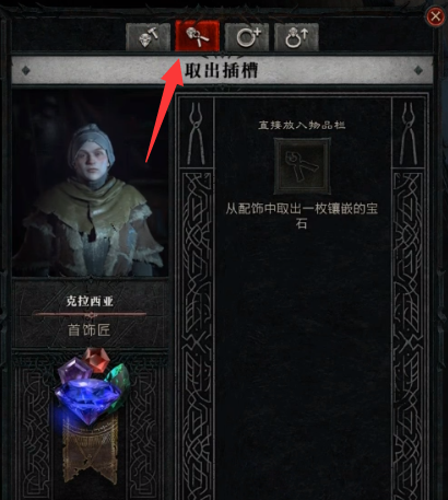 2、在这里跟他对话,选择上方栏中第二个选项“取出插槽”