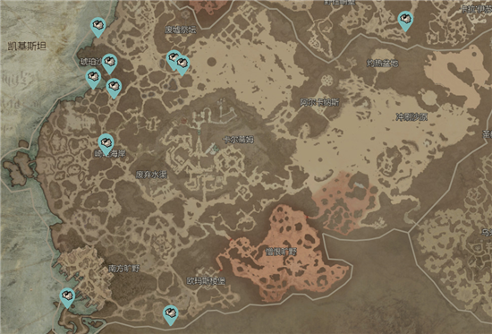 目前一共9个,同样是在左侧,可以从废墟祭坛下方出发拿到2个宝箱后,往左走到琥珀沙原、再一路向下到崎岖海岸,最后到南方旷野。
