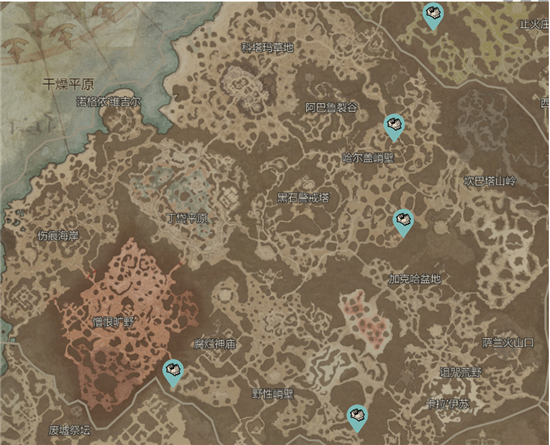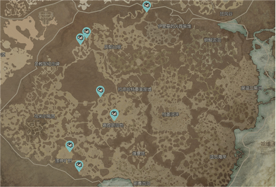 目前一共7个,渎神旷野上下各1个,1个在伊里曼的火葬柴堆左上角,阴郁山麓左边2个,费提斯湿地左上角1个中间1个。