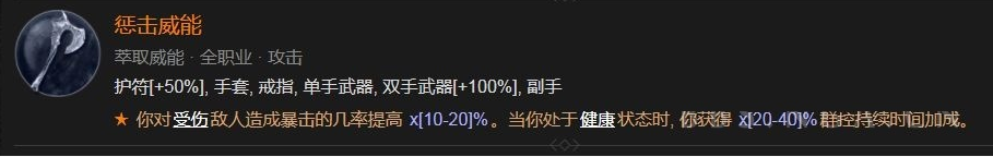 攻击威能位子推荐:武器+冻结增伤70%、项链+碎片数量(+7)、手套+屏障增伤20%、戒指+雪崩+惩击+CD回能(BOSS战用)。
