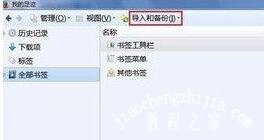 2、在弹出的书签管理页面里,选择“导入和备份”,并选择第一项备份,点击备份。
