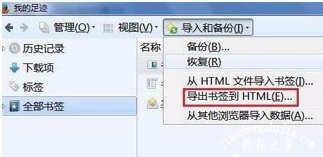 7、如要导出书签就选择“导出书签到HTML”,在打开的页面中选择要导出的文件保存位置就可以了