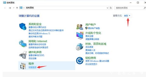 2. 在打开的控制面板中,查看方式改为【类别】,然后选择【卸载程序】