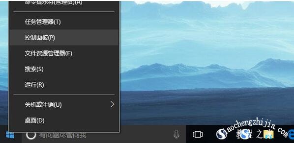 在开始菜单按钮右键,弹出菜单中选择【控制面板】