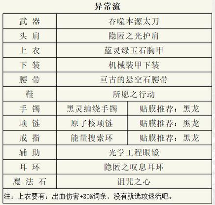 注:上衣要出血伤害+30词条,没有就选攻速流