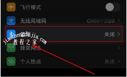 2、在设置中找到蓝牙功能,点击蓝牙功能进入界面;