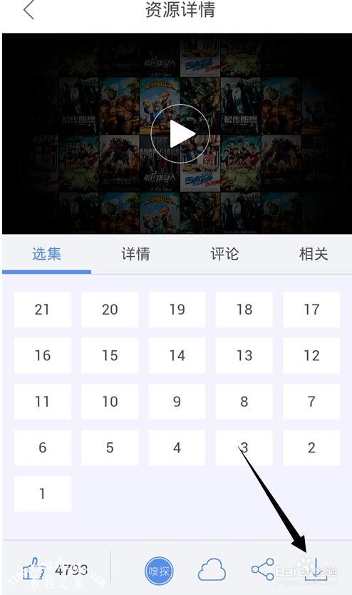 如果你直接点击剧集数字只能为在线播放方式,把剧集下载到本地则需要点击屏幕右下角【↓】更改为缓存下载模式。