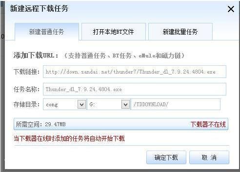 只要电脑迅雷或者远程下载设备正在运行,那么可以发送远程下载任务给TA们下载了,下载进入还可以通过手机【我的迅雷】-【远程下载设备】查看下载进度。