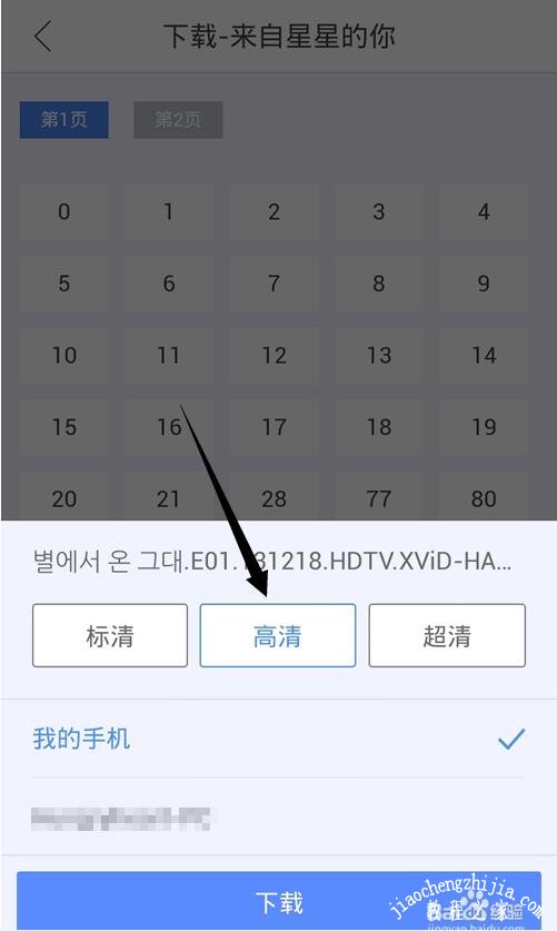 点击任一剧集屏幕下方出现缓存下载选项,一般热门资源有三个清晰度可供选择,纯观看的话高清可以满足你的需求了。