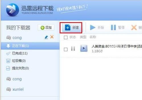 3、在远程网页上点击“新建”进行下载。