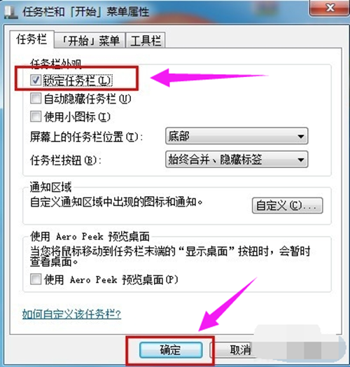 同时,为了更加直观的布局任务栏中的各部分图标,可在打开的“任务栏”选项中勾选 “锁定任务栏”,