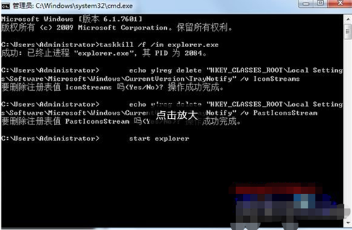 注:第一句输入完成后是关闭windows外壳程序的,所以输入完成回车后,桌面图标和任务栏会消失。