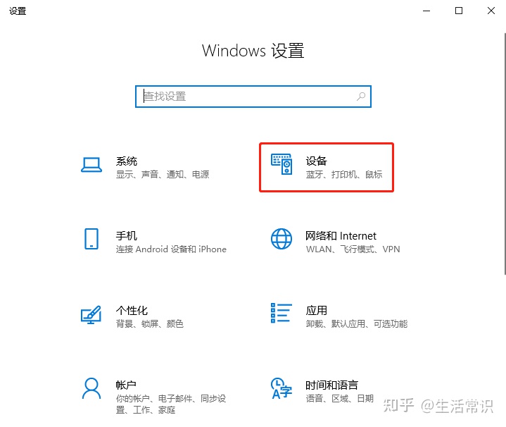 1. 首先,打开“Windows设置”窗口,并选择“设备”