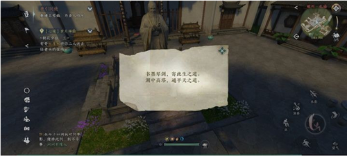 任务过程:救了小鹿之后到孔庙,孔子像前蒲团翻出来一本乐谱,演奏完后会得到一个小纸条。