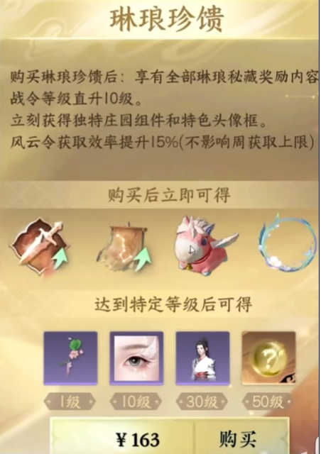 3、每个赛季都有两款战令,分别是68和163的,玩家可根据需求选择入手。
