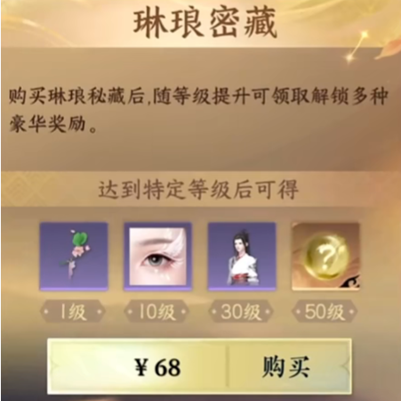 68的琳琅秘藏的奖励是要比168的更好,所以还是建议玩家购买68的。