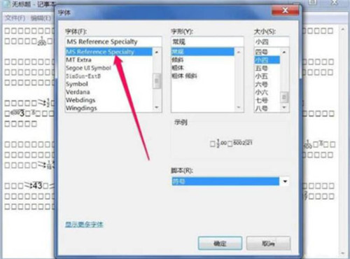 2、在字体修改窗口,可以看到设置的不是中文字体,发现是一种符号字体;如图所示: