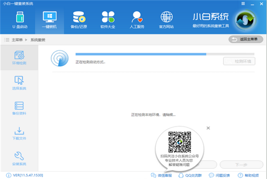 4,小白会优先检测本地环境是否符合装机条件,检测完毕后点击下一步,如下图所示: