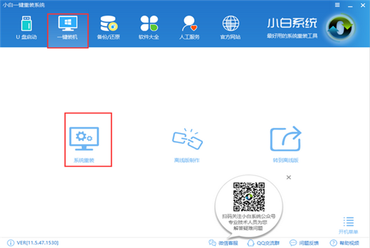 3,将界面切换到“一键装机”,然后点击“系统重装”。