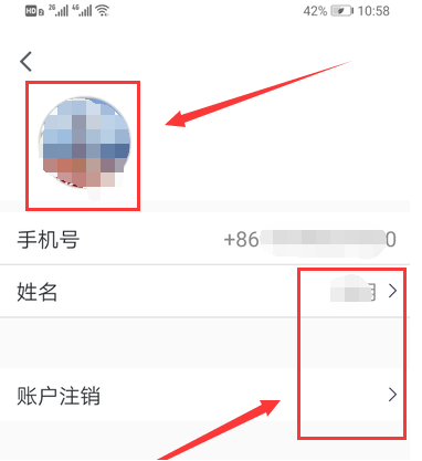 4、点击头像和手机号并无反应,姓名和账户注销可修改。因此,直接点击头像,是无法修改头像的。