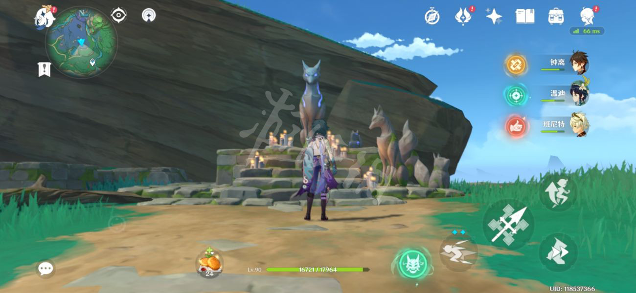1、第一个位置需要传送到神里屋敷的传送锚点那里,传送过去后往上方的海边走,走到山崖边上后飞到对面的小岛上去。