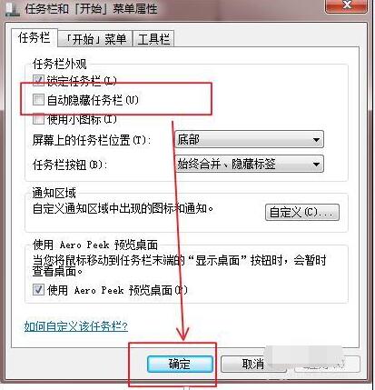 (2)按windows健(位于ctrl和alt中间),显示出开始菜单,在空白处单击右键,点击“属性‘,打开“任务栏和开始菜单属性”,在任务栏中选中“自动隐藏任务栏”,应用后再取消选择。同时选择“锁定任务栏”。