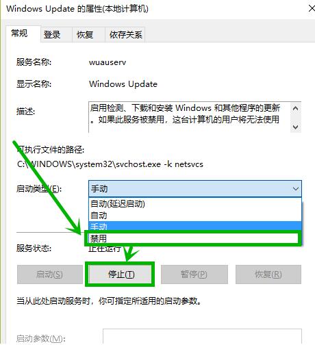 4、之后将【启动类型】改为【禁用】,再点击【停止】按钮
