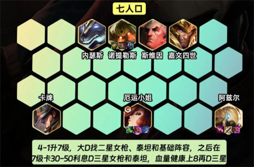 之后在7级卡30-50的利息D三星女枪和泰坦,前期连胜经济和血量都比较健康的话可以升8级再D三星;