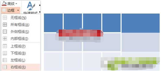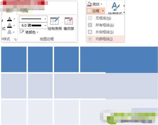然后选中左侧4列表格,设置绘图边框为6磅、白色,然后点击“边框”,选择“内部框线”。