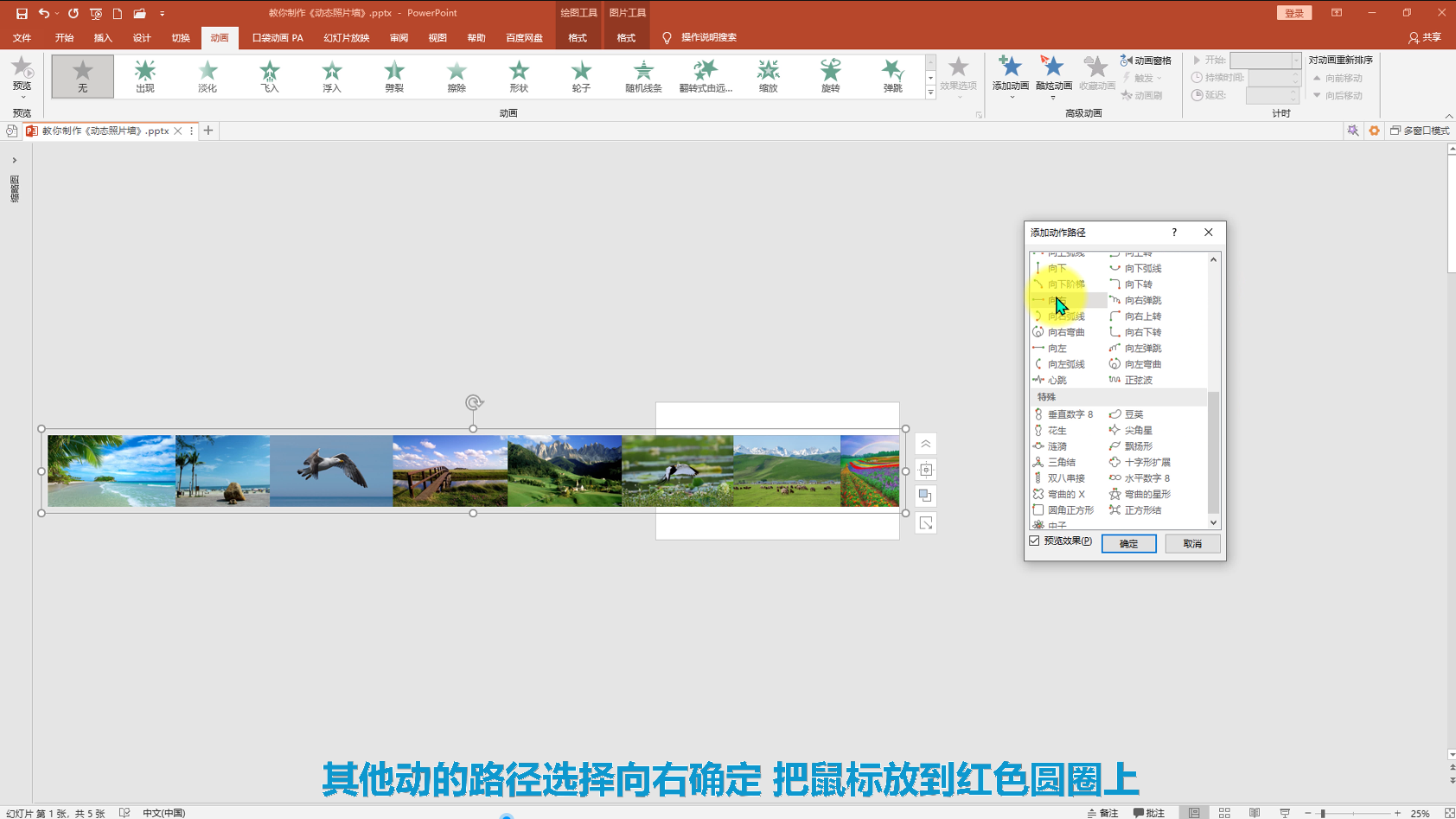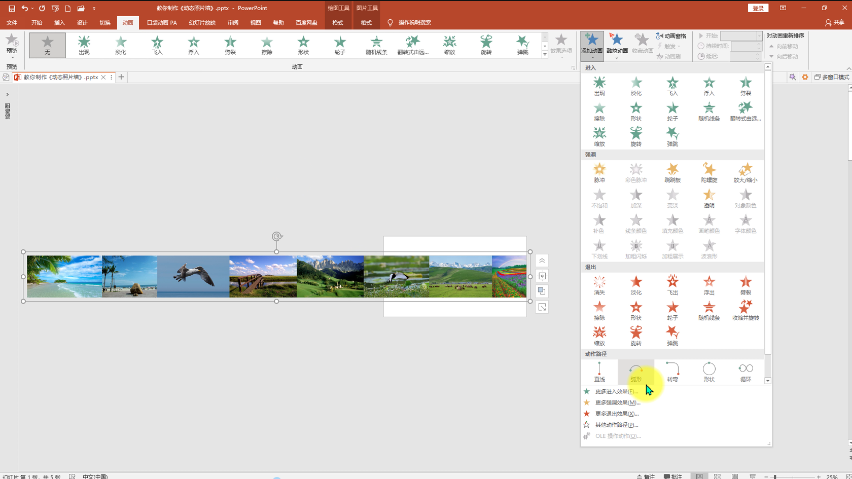 第三步,点击工具栏上的动画菜单,点击右侧添加动画,在下拉菜单中选择其它动作路径