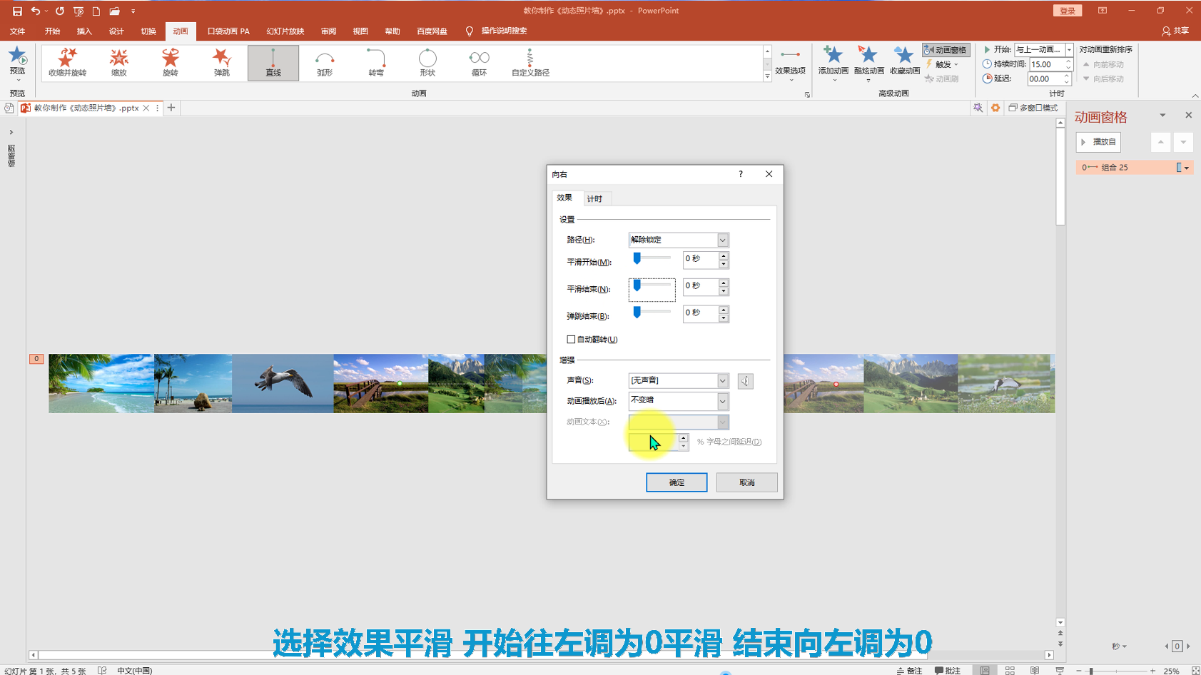 在工具栏打开动画空格,双击动作路径,平滑开始调整为0,平滑结束调整为0