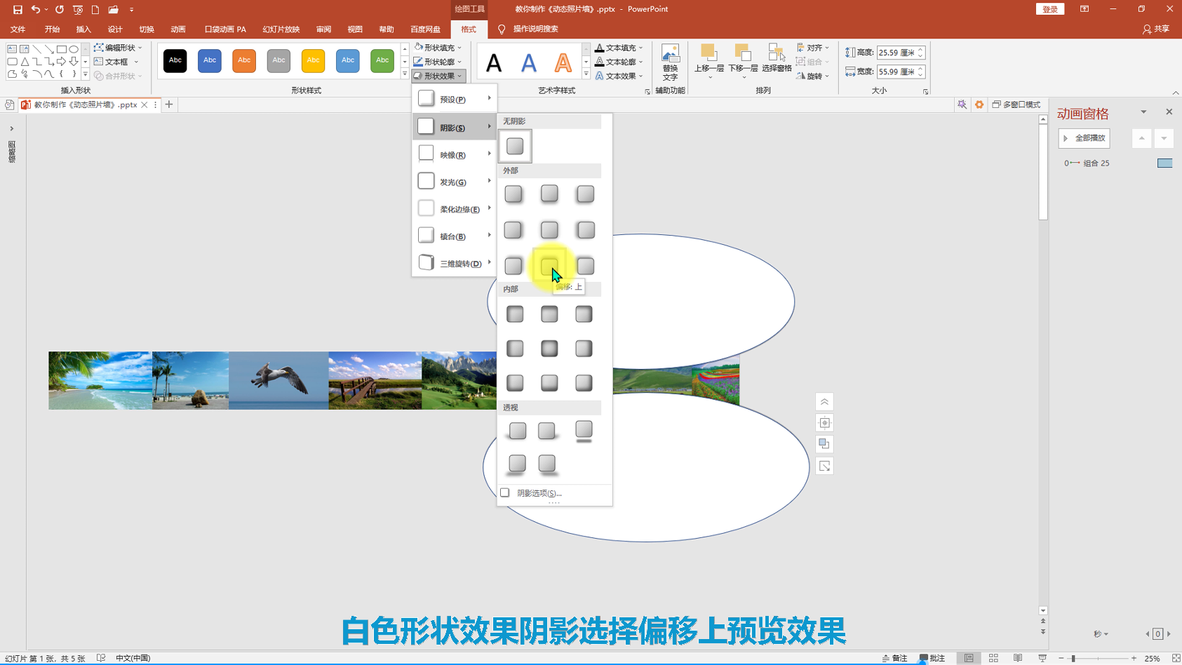绘制下面椭圆,填充颜色为白色,设置上面椭圆形状效果-阴影-外部-偏移-上
