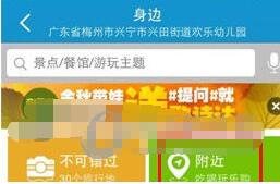 1、首先打开携程旅游,在首页点击【身边】,再点击【附近】进入。