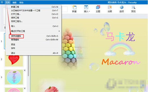 1、在模板制作完成后,点击菜单栏的“文件”选择“保存成模板”或者点击键盘的Ctrl+Shift+S。