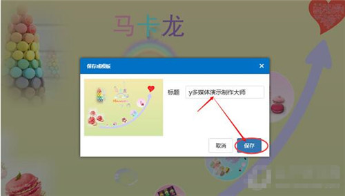 2、随后便会出现如图所示的对话框。编辑模板标题,最后“保存”。