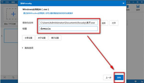 4、可以选择文件保存地址,文件名,点发布,这样就能做出一个exe文件