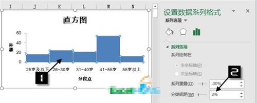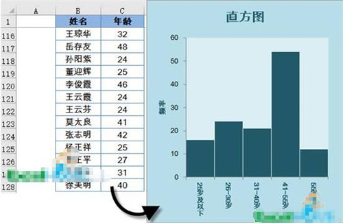 这里分别设置为25、30、40、55,表示统计25岁及以下、26~30岁、31~40岁、41~55岁和55岁以上几个年龄段的分布。