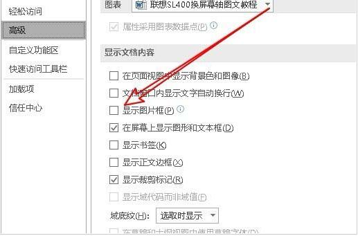 5、接着在右侧的窗口中我们找到并勾选“显示图片框”设置项。