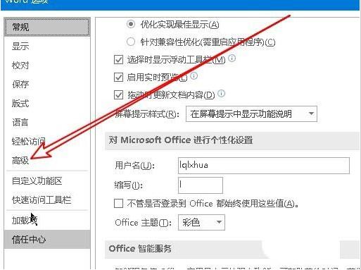 4、这时就会打开Word的选项窗口,在窗口中点击左侧边栏的“高级”菜单项。