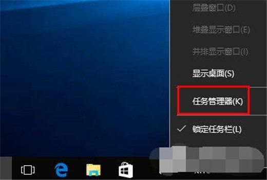 5、在任务栏上右击鼠标,在弹出的菜单中点击“任务管理器”;