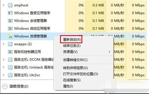 6、在任务管理器中找到“Windows资源管理器”,右击鼠标,选择“重新启动”即可重建图标缓存。