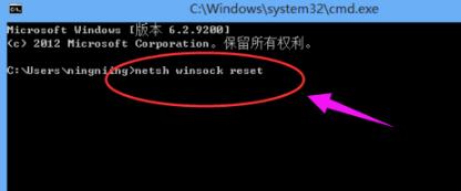 2,进入命令行界面,输入 netsh winsock reset 命令,点击确定
