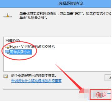 5,选择【可靠多播协议】,点击右下角【确定】,安装成功问题解决